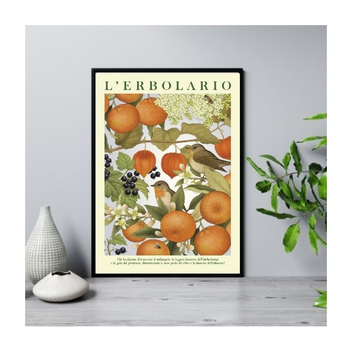 Quadro Poster Passarinhos com Frutas 24x18cm - com Vidro:moldura Branca