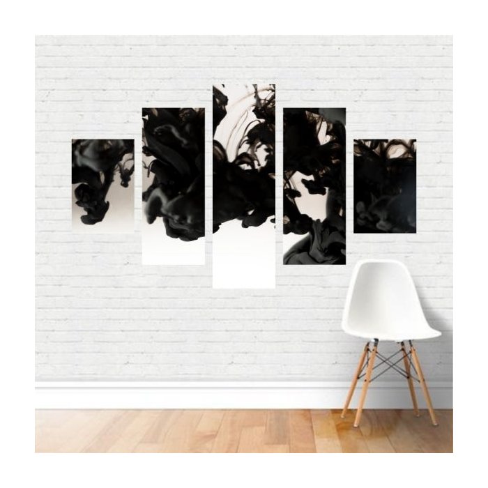 Quadro Preto e Branco Arte Abstrata Fumaça Negra em Canvas