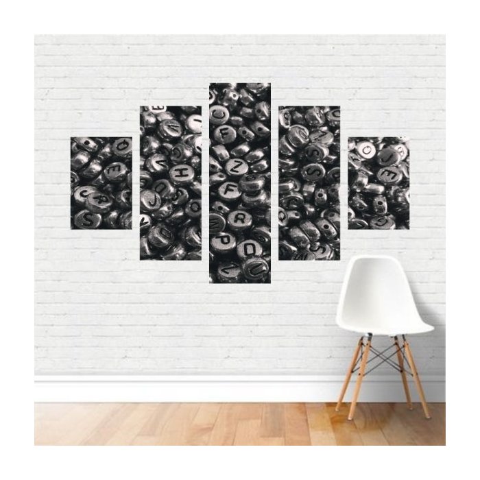 Quadro Preto e Branco Botões Metal Letras Alfabeto Canvas