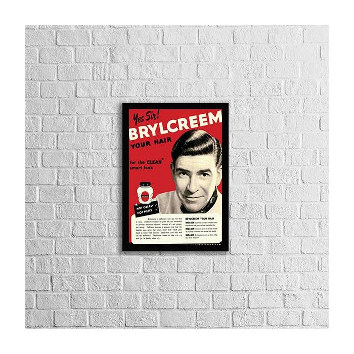Quadro Propaganda Pomada de Cabelo 45x34cm - com vidro:Madeira preta