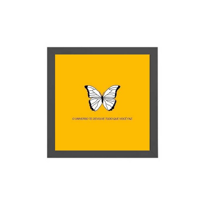 Quadro Quadrado Borboleta Universo 20x20cm:Madeira preta
