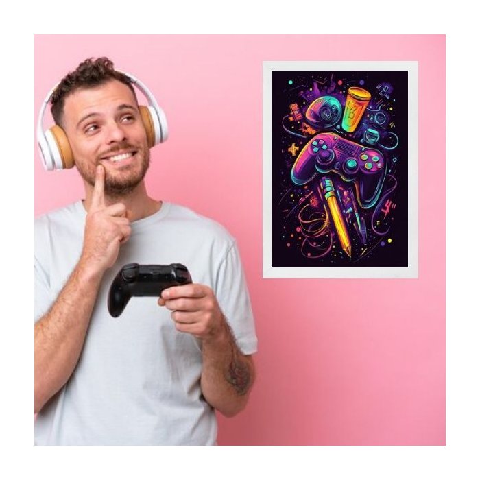 Quadro Quarto Adolescente Gamer 24x18cm:moldura Branca Moldura branca