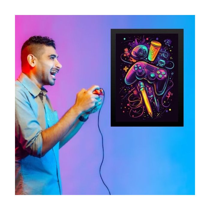 Quadro Quarto Adolescente Gamer 33x24cm:moldura Preta
