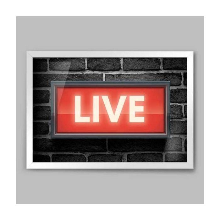 Quadro Rádio Live Ao Vivo - 45x30cm - Moldura Padrão Branco