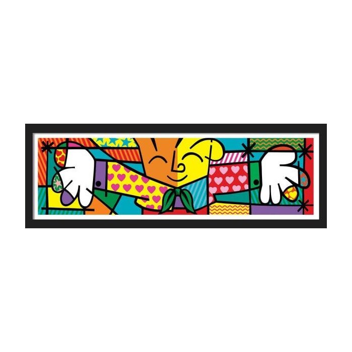 Quadro releitura Romero Britto - The Hug (o Abraço) com Moldura - Preto