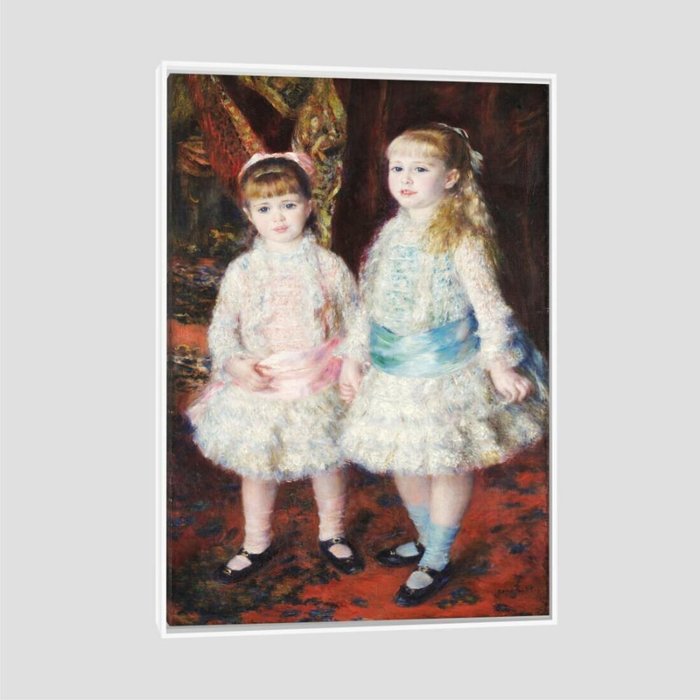 Quadro Reprodução Renoir Rosa e Azul Tela Canvas Moldura Branca 63x42cm. Reprodução de pintura famosa do artista Renoir. Acabamento Moldura Branca. Tamanho: 63x42cm. Material: Tela Canvas. Referência: QCARRA1X46e2X25l2X55x. Dispensa vidro. . Quadro com imagem impressa em tecido canvas (o mesmo usado em tela de pintura) esticado em chassi de madeira tratada com 3 cm espessura. As laterais do quadro são cobertas com a extensão da imagem frontal (sem alterar a imagem original da frente do quadro) O quadro tela canvas vai pronto pra colocar na parede e dispensa uso de vidro. A moldura modelo infinita compõe a tela canvas proporcionando mais beleza e sofisticação ao quadro. Tem estilo moderno e detalhe de espaçamento entre a tela e a moldura que dá um toque todo especial ao quadro. As laterais da moldura tem altura de 4 cm.