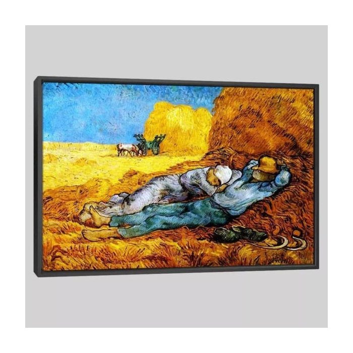 Quadro Reprodução A Sesta Depois De Millet 95x63cm Moldura Preta Azul
