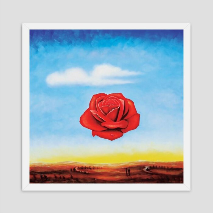 Quadro Rosa Meditativa Salvador Dali Vinil Moldura Branca 30X30Cm