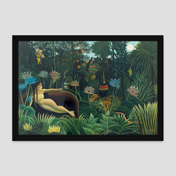 Quadro Rousseau O Sonho Vinil Moldura Preta 63X42Cm