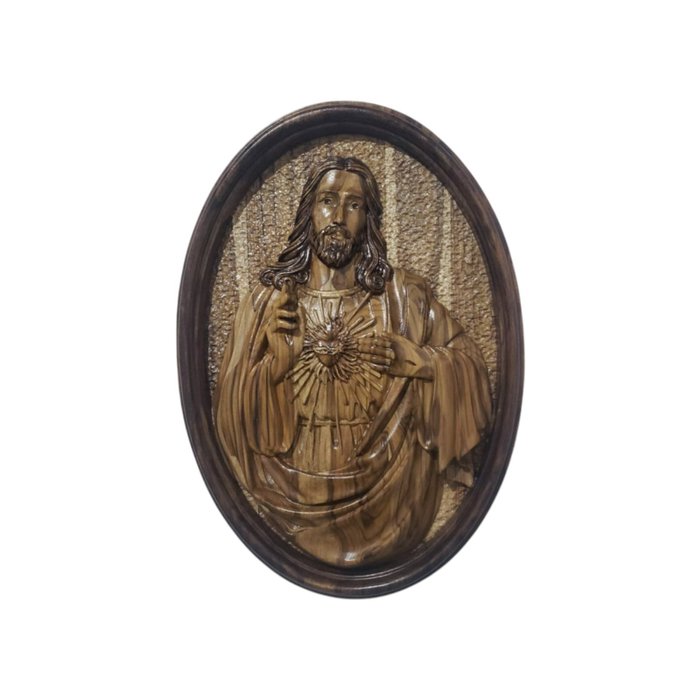 Quadro Sagrado Coração de Jesus Entalhado em Madeira