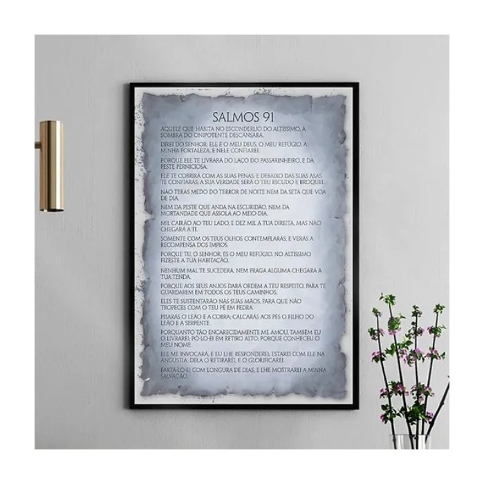 Quadro Salmo 91 - Papiro Cinza 45x34cm:moldura Preta