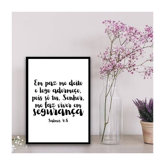 Quadro Salmo Em Paz Me Deito 24x18cm:Madeira branca branca