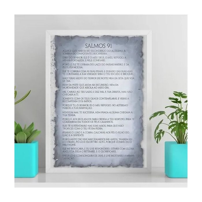 Quadro Salmos 91 - Papiro Cinza 24x18cm:moldura Branca Moldura branca