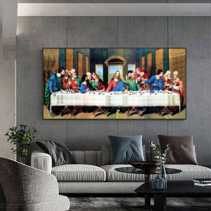 Quadro Santa Ceia Original Leonardo da Vinci:140x70 cm/BORDA INFINITA