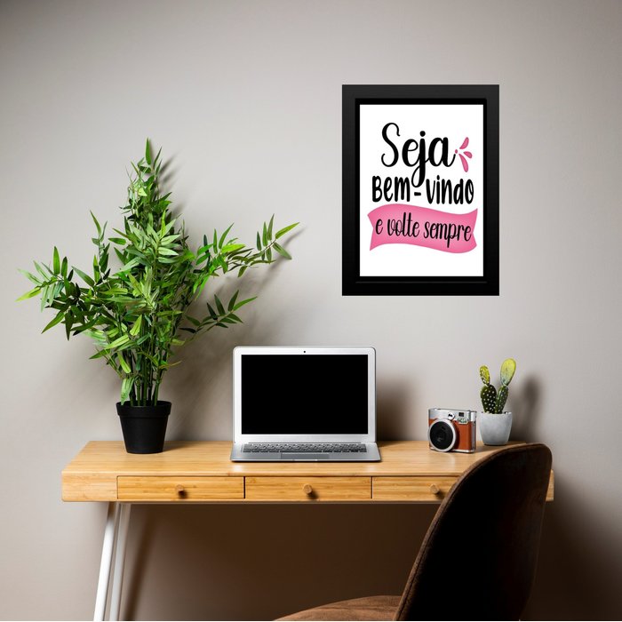 Quadro Seja Bem Vindo e Volte Sempre 33x24cm:moldura Preta Moldura preta