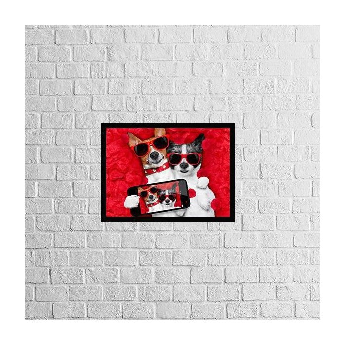 Quadro Selfie Gatinho E Cachorrinho 24X18Cm 002