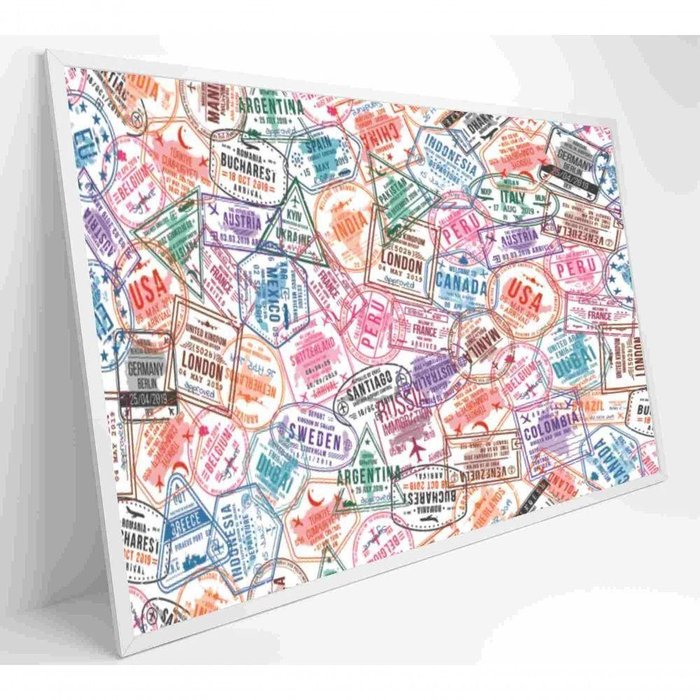 Quadro Selos de Viagens em Passaporte Medidas 60x40 Cm Impressão Adesivo Fotográfico