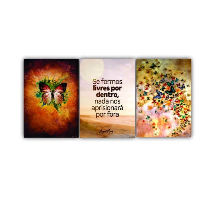 Quadro Sermos Livres Borboletas - Kit 3 telas - 150 x 100 cm - Branca