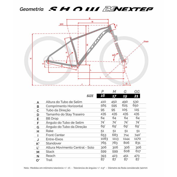*Recomendamos vc consultar um especialista em bike fit, de sua preferência, para saber qual tamanho de quadro se encaixa melhor com as medidas particulares do seu corpo.
