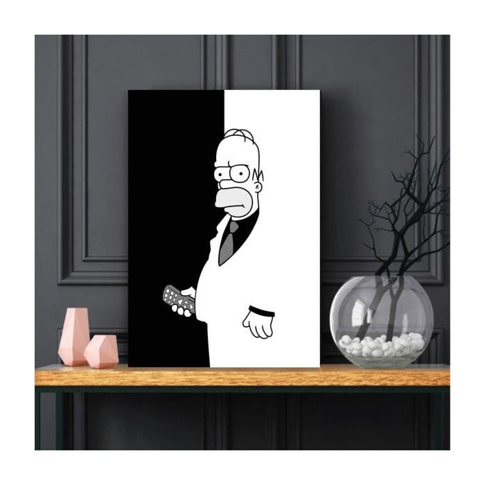 Quadro Simpsons Homer Preto e Branco Tela de Tecido
