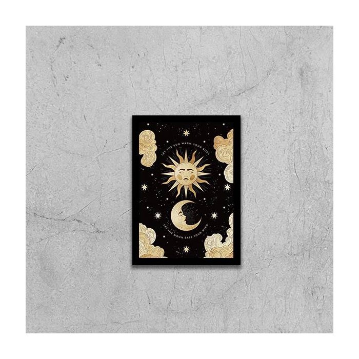 Quadro Sol e Lua 24x18cm - com vidro:Madeira preta