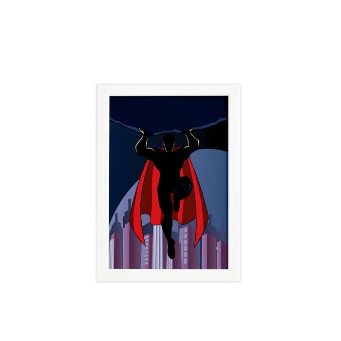 Quadro Super Heróis Geek Superman Rocha Moldura Branca 33x43