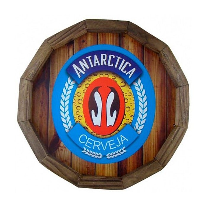 Quadro Tampa de Barril em Madeira Rústica – Cerveja Antarctica – Boa