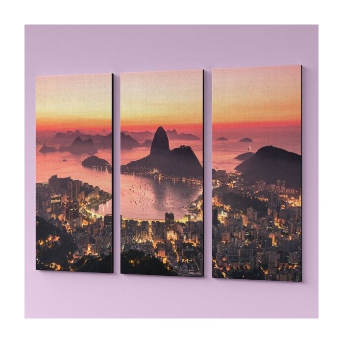 Quadro Tecido Canvas Tam. 60X40cm Tema Paisagem Rio de Janeiro - 3 Telas QC60X40-3T016