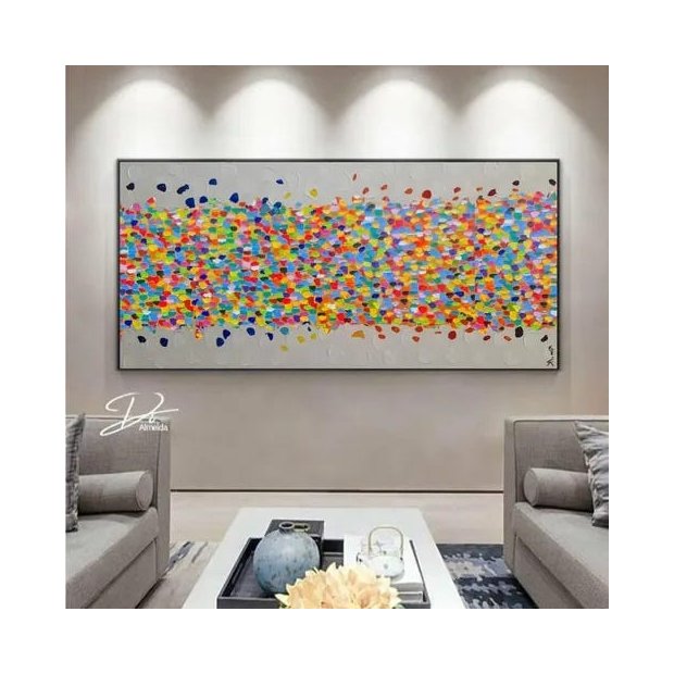 Quadro Tela Abstrato Sala Pintado a Mao Horizontal Pintura