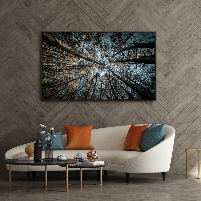 Quadro/ Tela Canvas Copa Arvores 1,50x1,00m -Moldura Flutuante Preta - Decorativo Sala Quarto