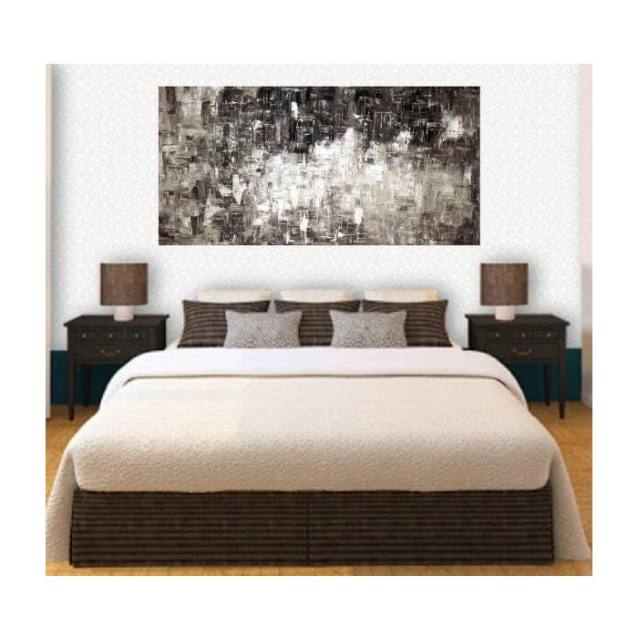 Quadro Tela Pintura À Mão Abstrata Tons Cinza 54X100Cm