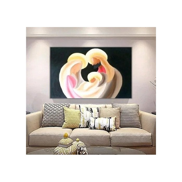 Quadro Tela Sagrada Familia Para Sala Pintado A Mão