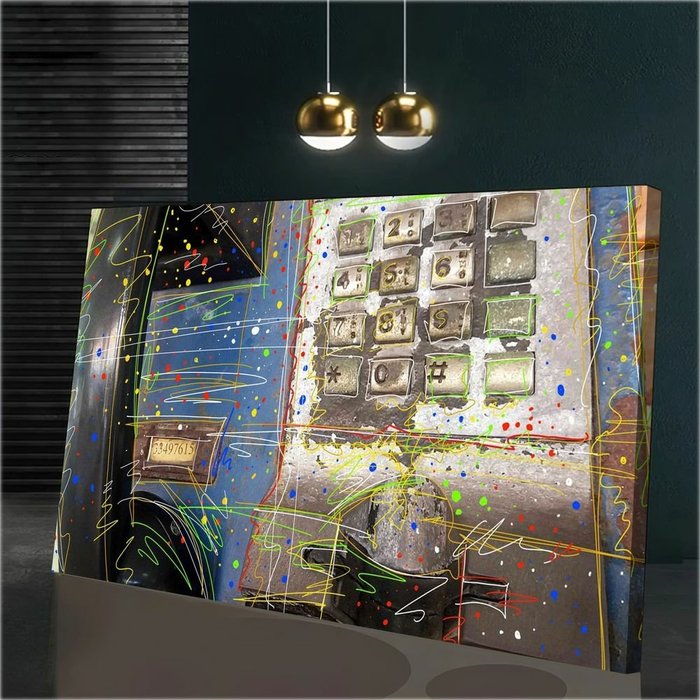 Quadro Telefone Publico Intervenção Digital:90x60 cm/DOURADA
