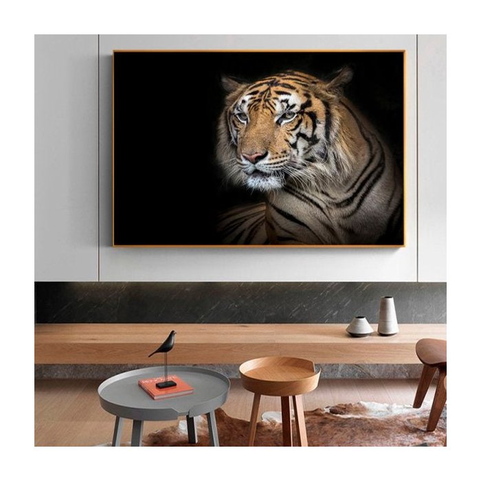 Quadro Tigre Fundo Preto - Tela Única - 120 x 90 cm - Preta