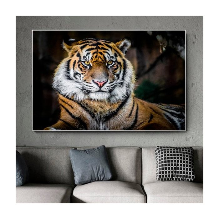 Quadro Tigre Imponente Horizontal - Tela Única - 120 x 90 cm - Branca