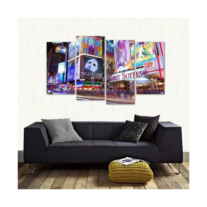 Quadro Times Square Paisagem Noturna Em Tecido 4 Peças