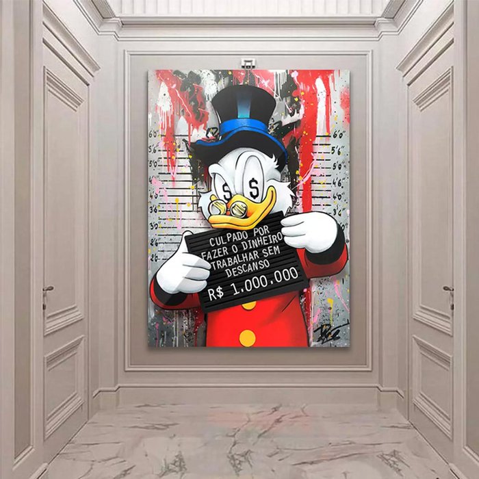Quadro Tio Patinhas Culpado Por Fazer O Dinheiro Trabalhar- Tela Única Decor Arte RJ 120 x 90 cm Cha