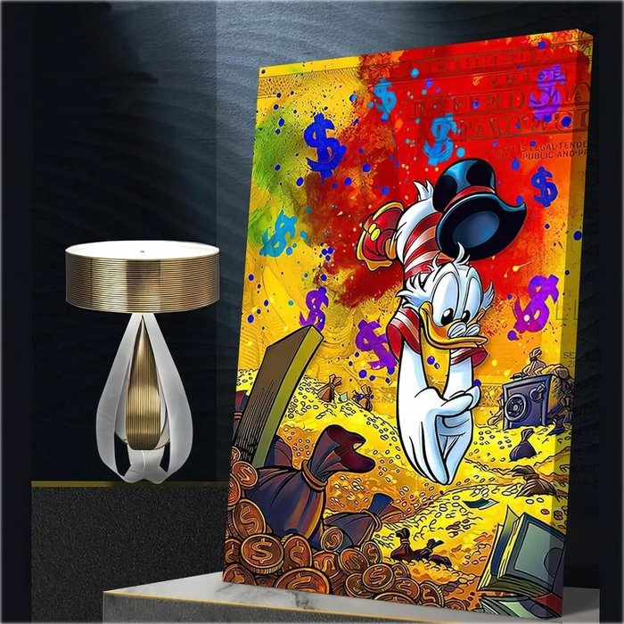 Quadro Tio Patinhas Nadando em Dinheiro:120x80 cm/BORDA INFINITA