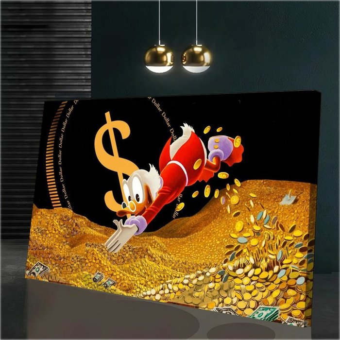 Quadro Tio Patinhas Nadando em Dinheiro:60x40 cm/DOURADA