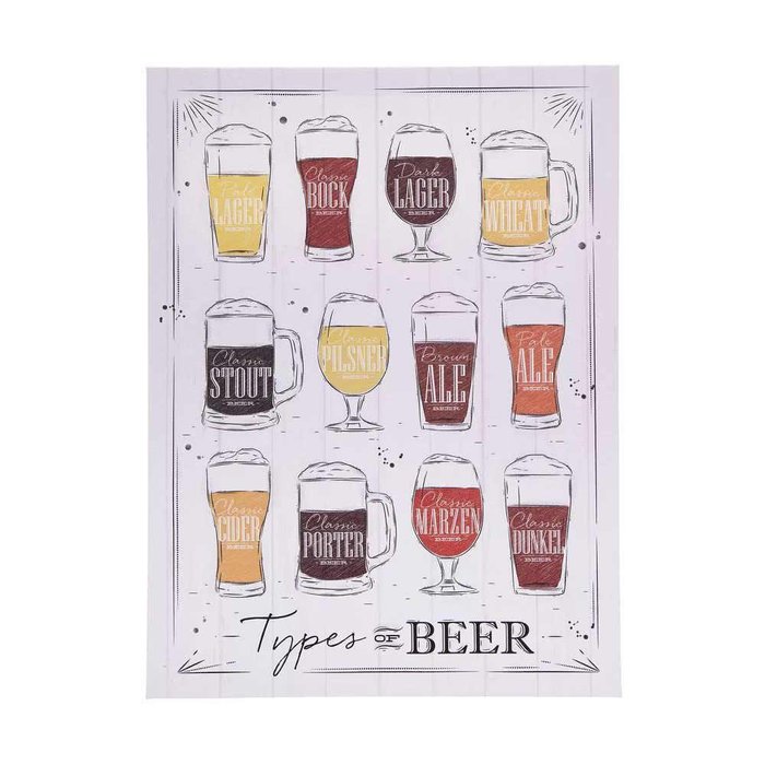 A Tela Decorativa Types of Beers é uma ótima opção para alegrar seu espaço gourmet falando de cervejas. Ideal para os amantes da cerveja, uma das bebidas mais tradicionais do mundo.
