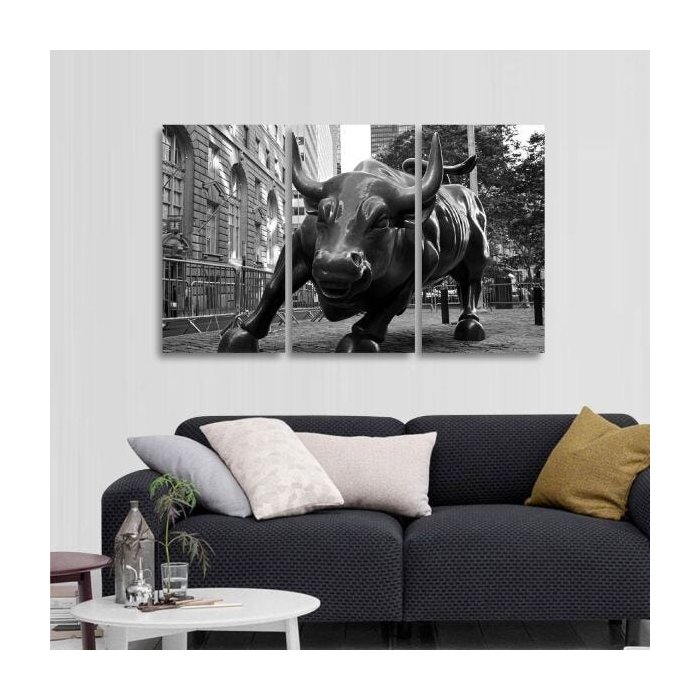 Quadro Touro de Wall Street Preto e Branco Sala Escritório