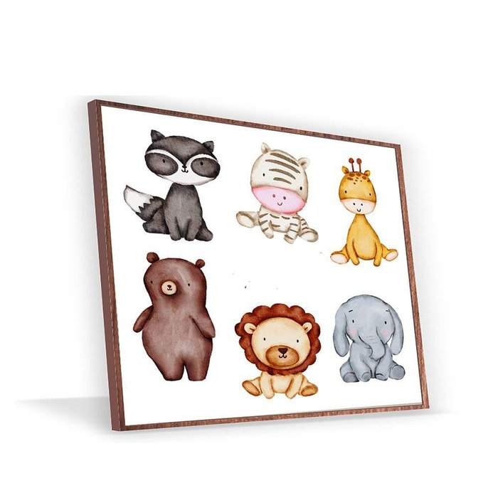 Quadro Turma do Zoo Vinil com Vidro Tamanho-moldura 20x30 Baixa Cor Madeira