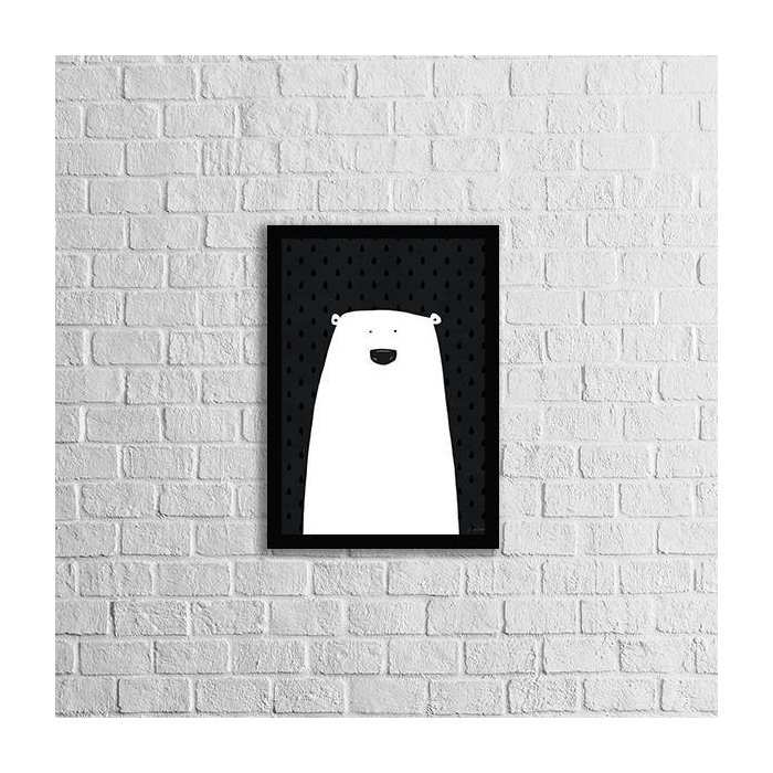 Quadro Urso Escandinavo 24x18cm - com vidro:Madeira branca