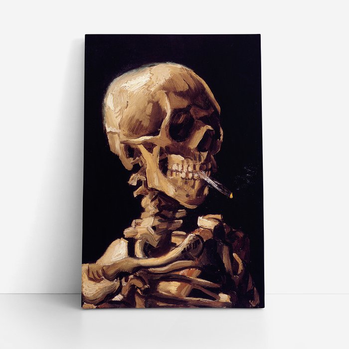 Quadro Van Gogh Caveira com Cigarro Aceso Canvas 140x90cm