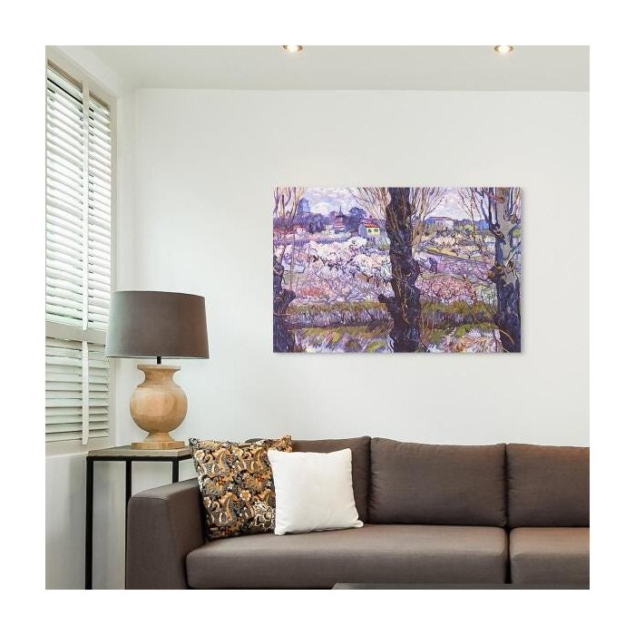Quadro Van Gogh Vista Em Arles Pomar Flor Releitura 90X60Cm