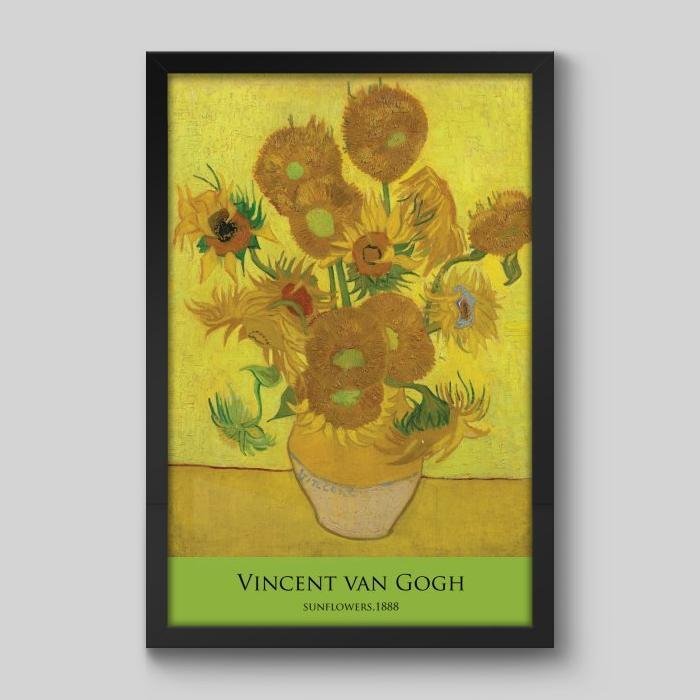 Quadro Vincent Van Gogh Sunflowers 1888 Arts Memphis 90x60cm Moldura Caixa Preto