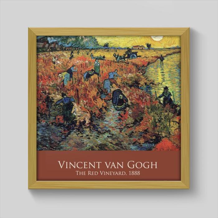Quadro Vincent Van Gogh The Red Vineyard Arts Memphis 20x20cm Moldura Padrão Madeira