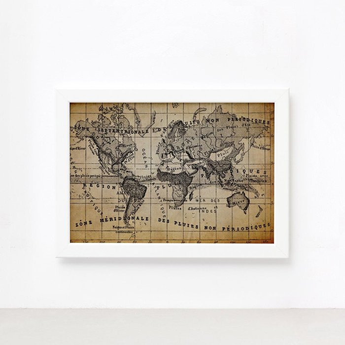 Quadro Vintage Mapa Antigo Meridional Moldura Branca 33x43cm