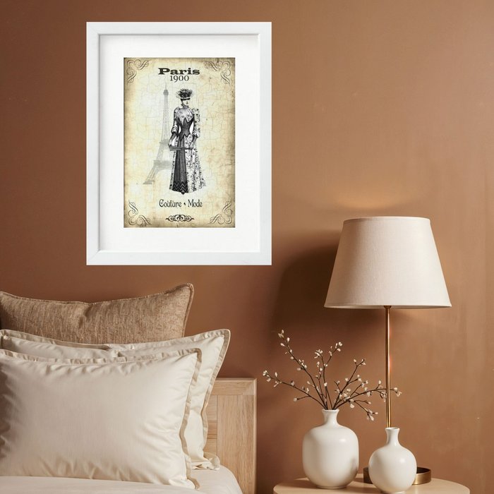 Quadro Vintage Moda Paris 1900 - 60x48cm:moldura Branca Moldura Branca