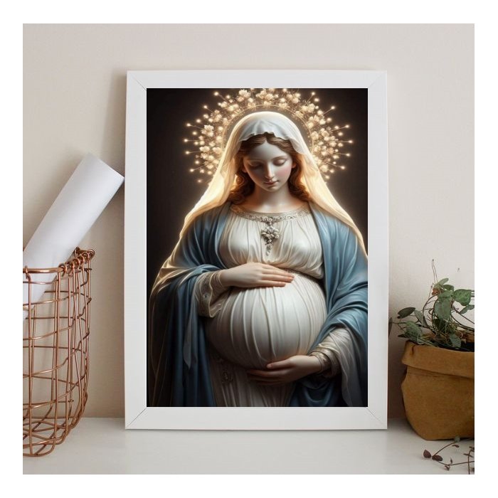 Quadro Virgem Maria Grávida 33x24cm - com Vidro:madeira Preta